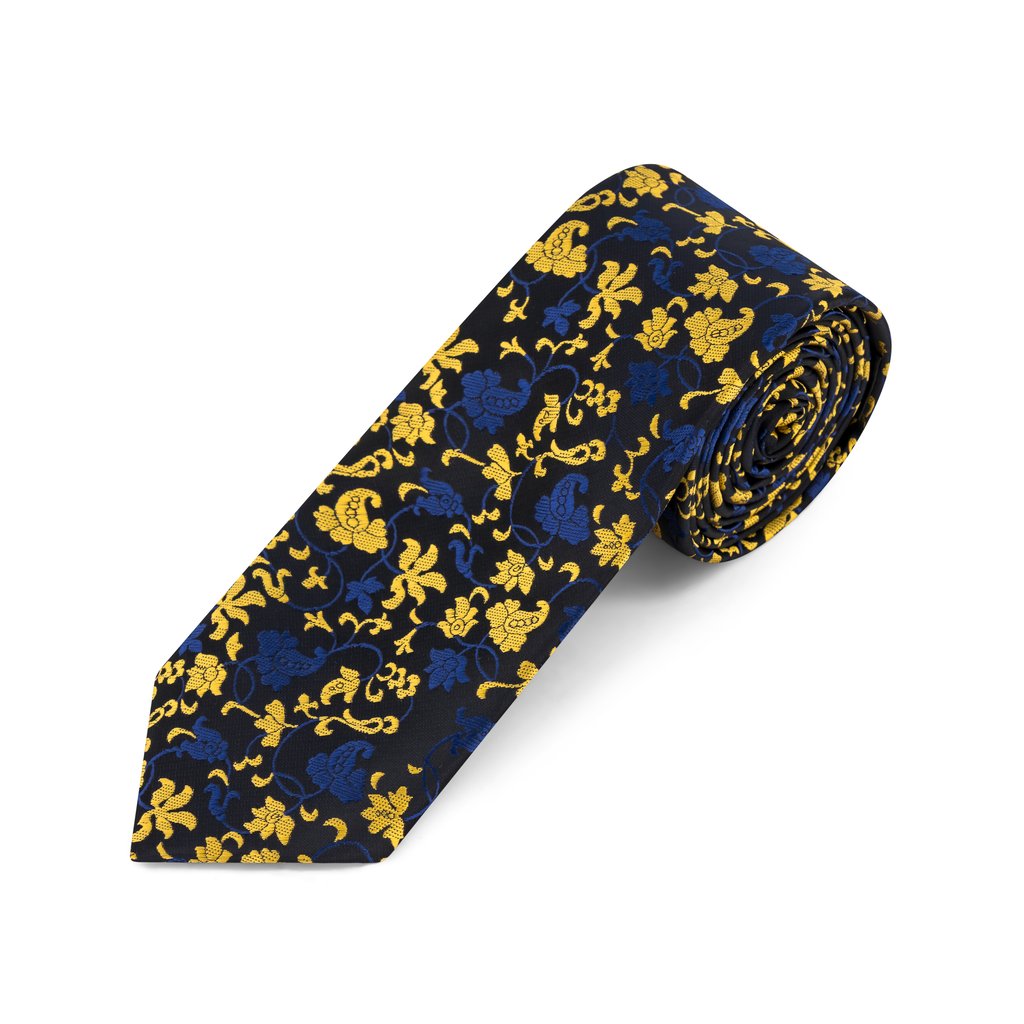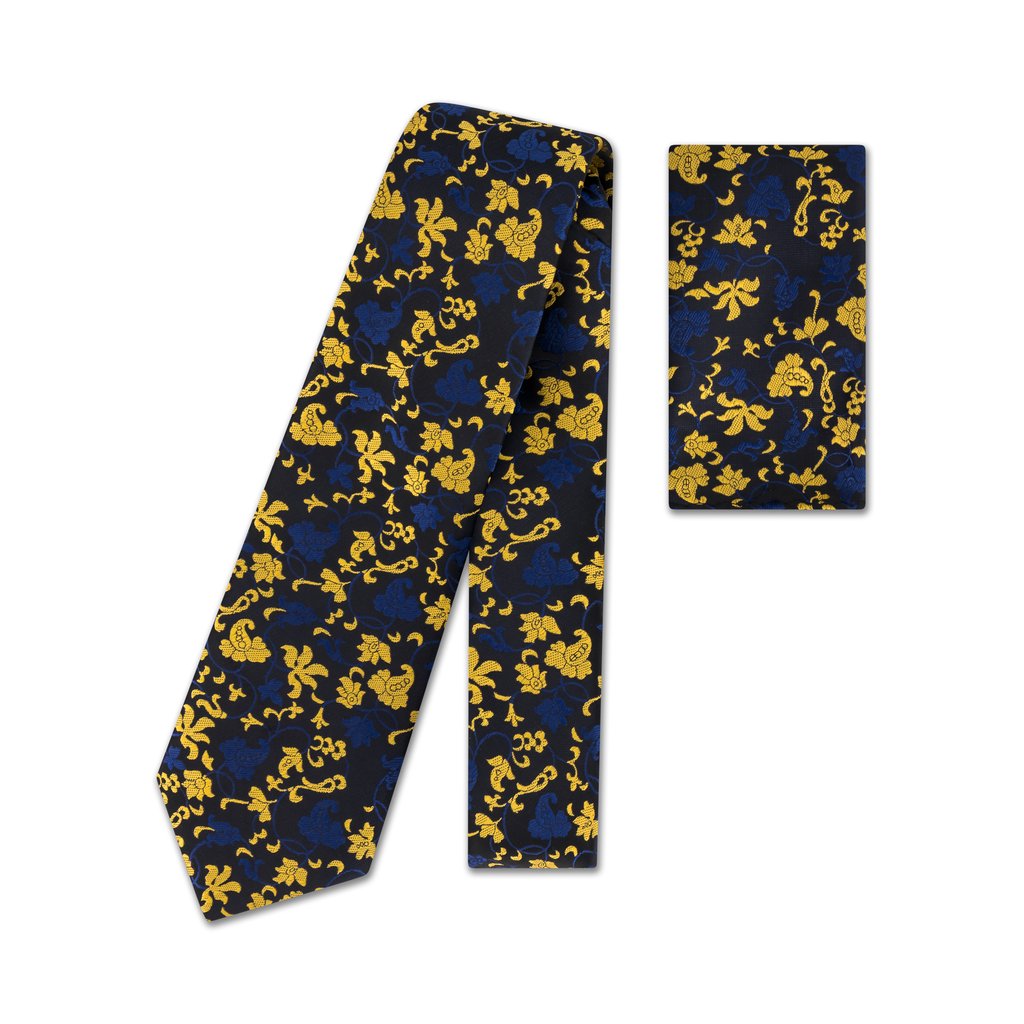 Bright and elegant, this Yellow & Blue Woven Floral Tie & Pocket Square Set adds a cheerful yet refined touch to your formalwear. The vibrant yellow background is beautifully contrasted by a woven floral design in soft and deep blue tones. Made from premium microfibre and paired with a matching pocket square, this set is perfect for weddings, daytime events, or adding a splash of color to your outfit.