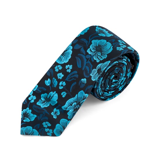 Aqua Woven Floral Tie & Pocket Square Set