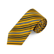 - Luxurious gold tie with blue and black stripes