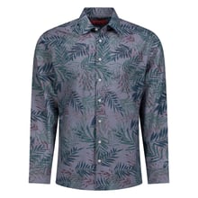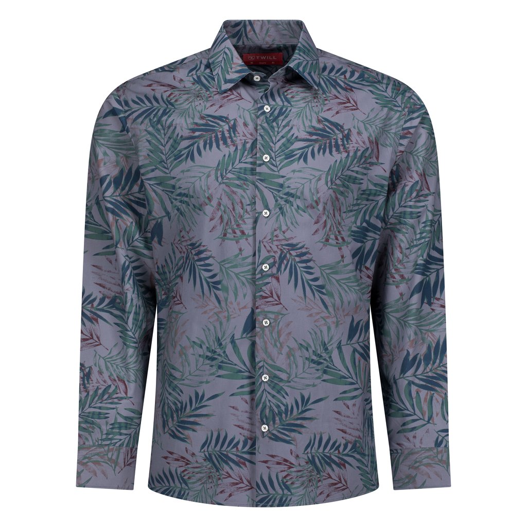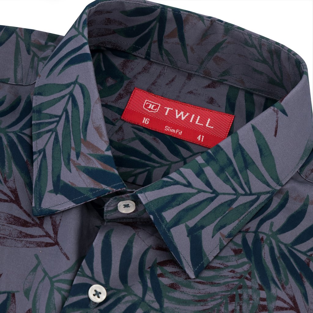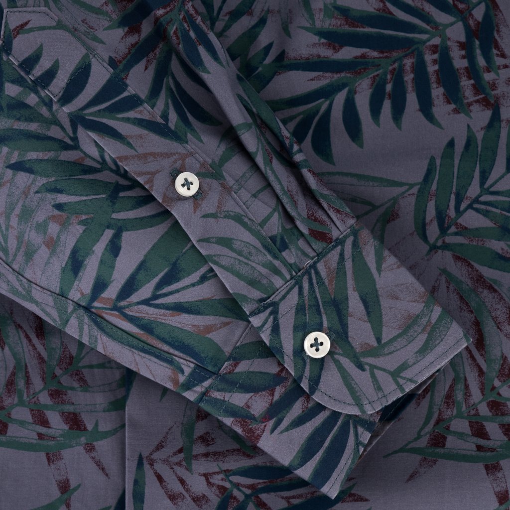 Enhance your wardrobe with this slim-fit grey fern print dress shirt, where the serene beauty of nature meets contemporary style. The shirt showcases a unique fern print in shades of greens over a sophisticated grey base, offering a fresh take on formal attire. The semi cutaway collar provides a modern yet understated elegance, while the single cuffs keep the look classic and versatile. Tailored for a slim fit, this shirt ensures a sharp, flattering silhouette that’s perfect for the modern gentleman. Bonded collar stays keep the collar crisp and professional throughout your day. With the convenience of being machine washable at 30 degrees and the assurance that ironing whilst damp will yield the best results, this shirt is both practical and stylish. Ideal for those who appreciate a blend of nature-inspired design with the demands of professional wear.
