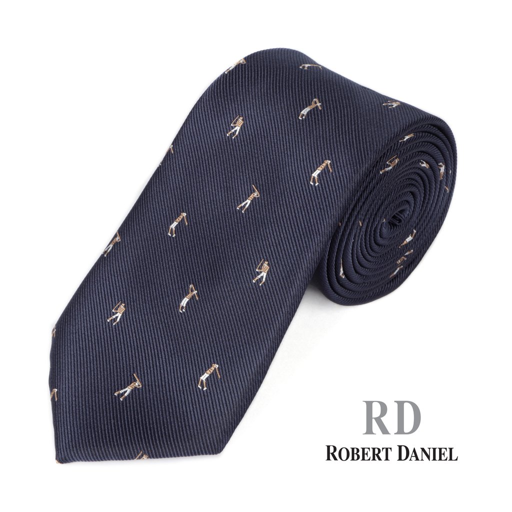 Add a touch of personality to your formalwear with this navy tie featuring a woven golfing figure in a step-and-repeat pattern. Crafted from microfibre for a smooth finish and lasting shape, it’s ideal for both business and leisure occasions. The matching pocket square completes the look with subtle sophistication.