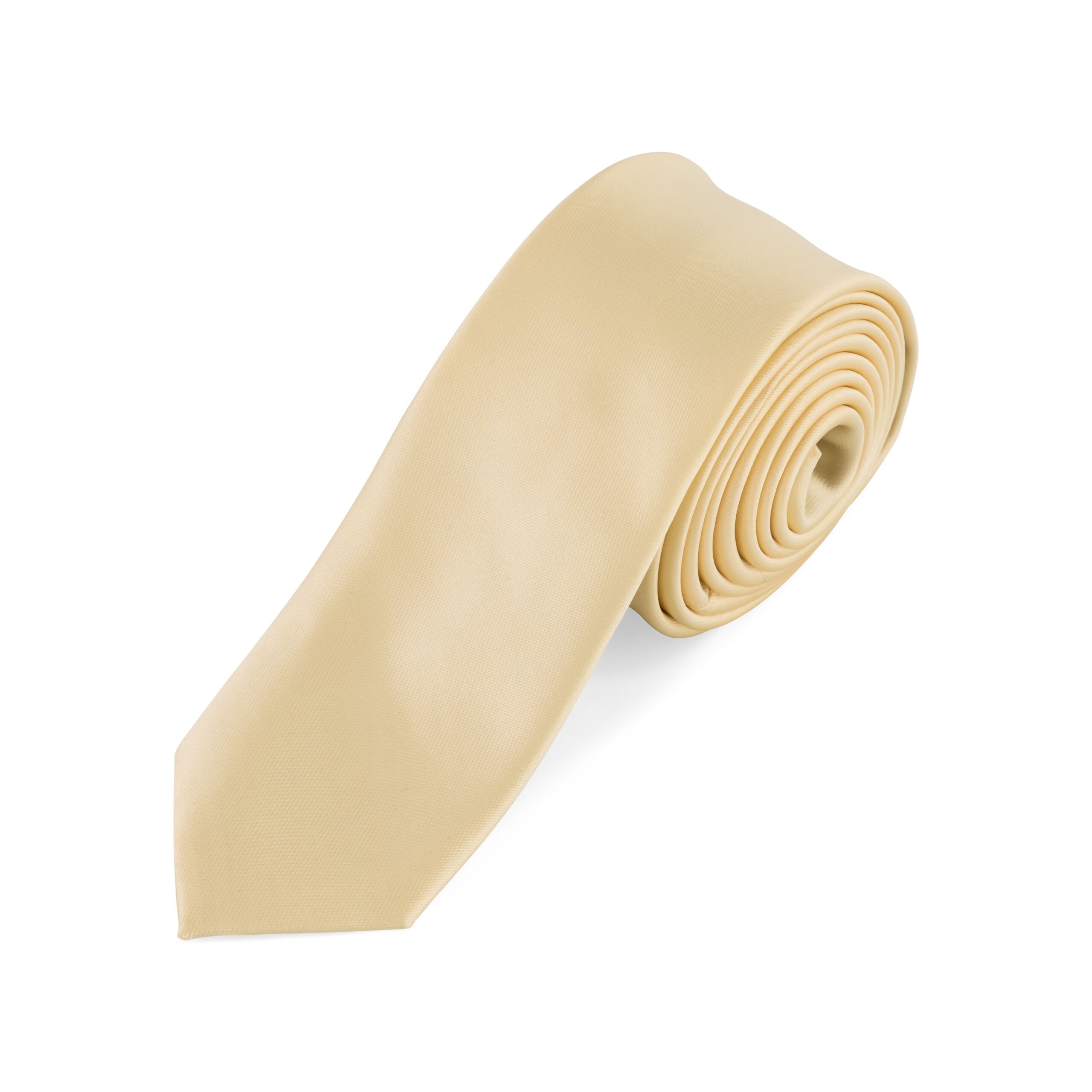 Introducing our Skinny Satin Finish Tie in Cream Microfibre. This tie is made from premium cream-coloured microfibre, featuring a sleek satin finish that adds a touch of elegance to any outfit. The skinny design measures 5cm in width, making it a modern and stylish choice for formal occasions.