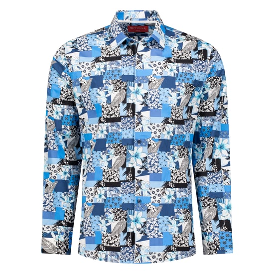 Exec Collection Blue Tone Floral Patchwork Printed Shirt | Slim Fit