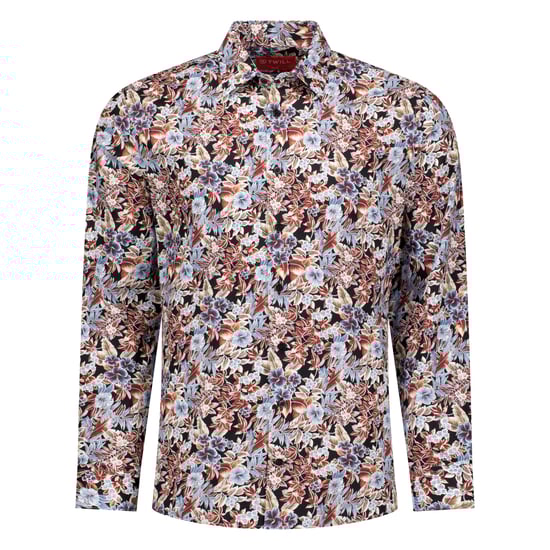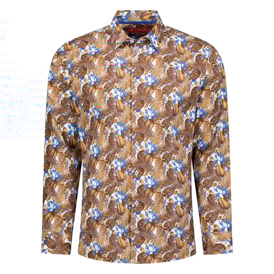 Exec Collection Brown and Blue Printed Floral White Shirt | Slim Fit