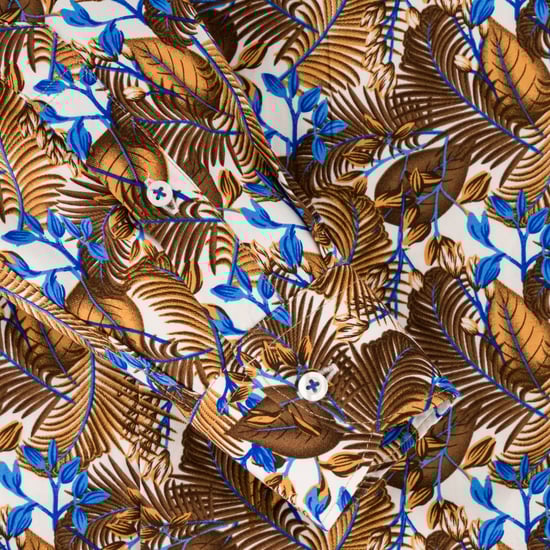 Blue Fern Print Cotton Dress Shirt | Slim Fit